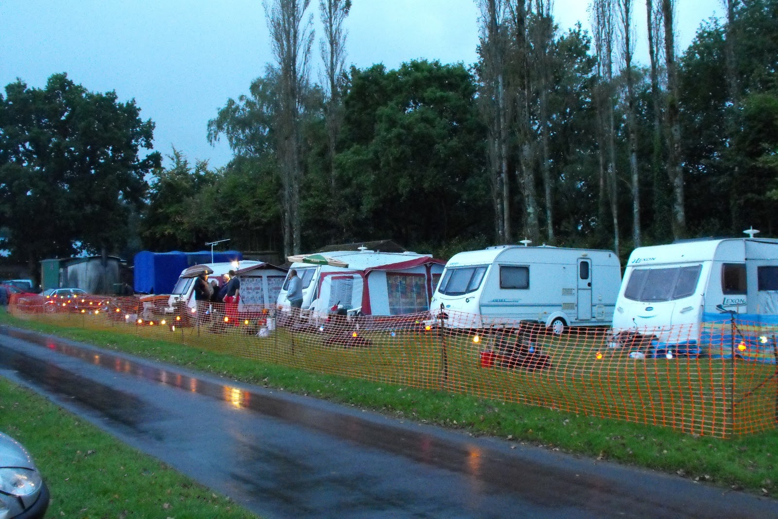 Our line up of stationary engines just as it was getting dark on the Saturday evening, we had coloured lights strung across the front. Our caravan in the one on the far right.